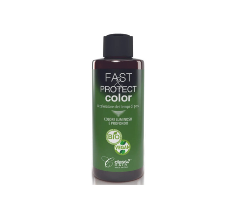 FAST&PROTECT COLOR è un acceleratore dei tempi di posa del colore che permette di ridurre i tempi di posa e di completamento della colorazione fino al 70% proteggendo, contemporaneamente, la fibra capillare. Il colore risulterà LUMINOSO e PROFONDO, velocizzando tutte le operazioni e guadagnando tempo prezioso. L’Olio di Girasole è emolliente e le ceramidi vegetali da esso derivate sono famose per la cura dei capelli colorati ed il mantenimento della lucentezza. L’Aloe Vera Biologica ha azione lenitiva ed idratante. L’Olio di Mandorle Dolci Biologico ha proprietà nutrienti ed ammorbidenti sul capello ed è ricco in acido palmitoleico particolarmente affine alla cute. L’Olio di Melograno Biologico dona lucentezza e morbidezza ed aiuta a preservale la luminosità del colore.
